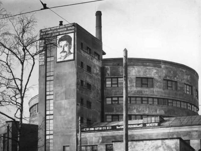 - См. картинку. На ней вы видите здание хлебозавода, на одной из башен которого висит портрет сурового мужчины.