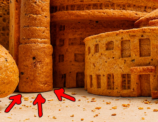 Загадан Левашовский Хлебозавод, чьи характерные округлые формы выполнены на изображении из хлеба.Ответ: 12