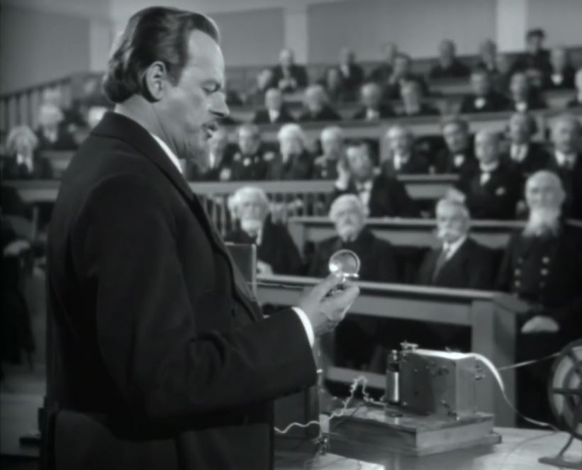 На илл.: Николай Черкасов в роли Александра Попова. Кадр из к/ф «Александр Попов». -